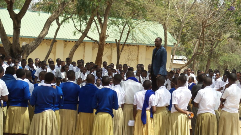 TELIYA International Society addressing students on Social Change in Bariadi, Tanzania, August 2015
